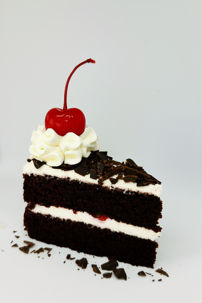 Classic Black Forest cake with fresh cream, cherry-chocolate magic.