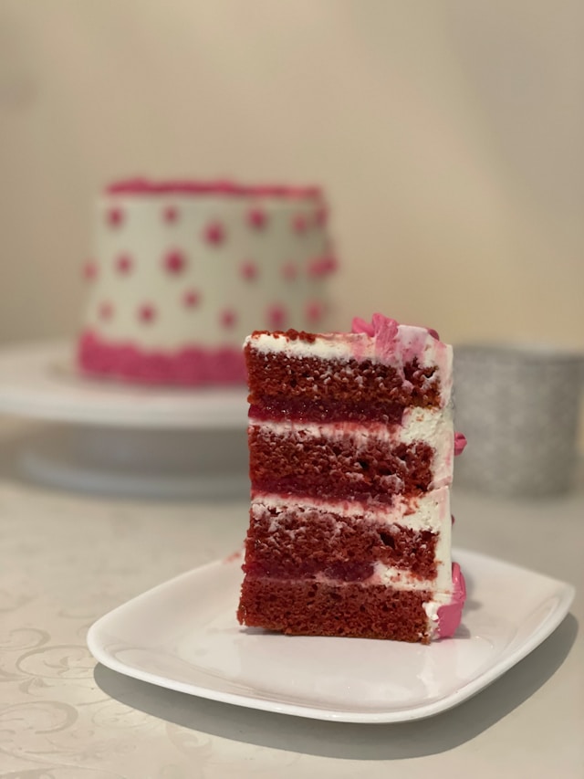 Classic red velvet cake with fresh cream, velvety red charm with a creamy, dreamy finish.